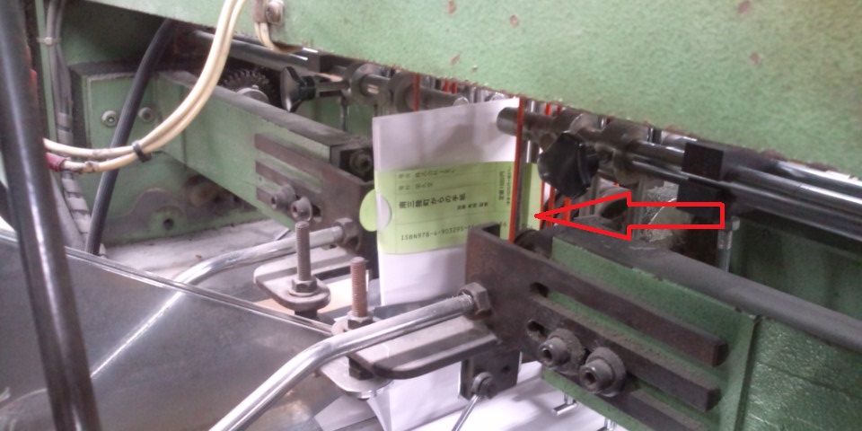【4】本に押し出されたスリップが折り曲がり、本に挟み込まれます